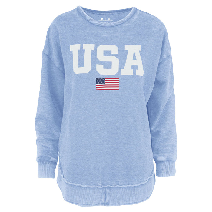 USA Flag Vintage Washed Poncho Fleece