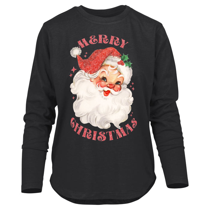 Glitter Santa Long Sleeve 100% Cotton Tee